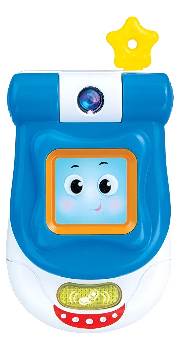 Mi Teléfono Móvil Plegable con Sonido - Teléfono plegable con foto del bebé - 4 botones de diferentes formas y colores con melodías divertidas - Tono de llamada intermitente y espejo de seguridad - Recomendado para niños de +3 meses - Funciona con 2 pilas AAA incluidas - Fabricado en plástico - Dimensiones aproximadas cuando está abierto: largo 17.6cm x ancho 6.4cm, alto 2.5cm - Color: Celeste - Las imágenes son ilustrativas, algunos detalles pueden diferir ligeramente del producto real así como el color