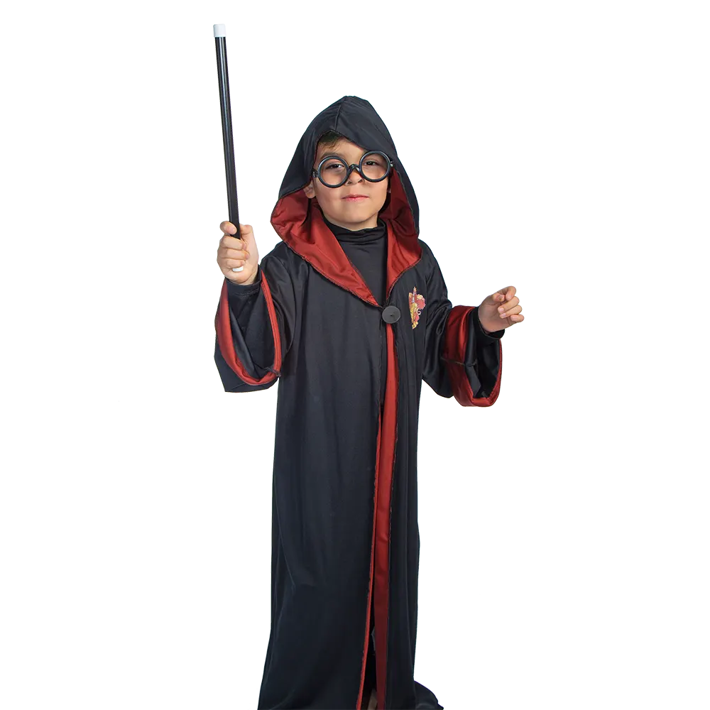 Harry Potter | ¿Alguna vez soñaste con recibir tu carta de Hogwarts y asistir a la escuela de magia mas famosa del mundo? Tu sueño está a punto de hacerse realidad. Nuestro increible disfraz de Harry Potter, que incluye varita y anteojos, te convertirá en un auténtico mago y te hará sentir parte de la magia de Hogwarts. Disponible en talles S, M y L para que todos los jóvenes hechiceros puedan unirse a la diversión ¡no esperes más y conseguí el tuyo en Vulcanita! Animate a emprender un viaje mágico. Tejido 100% poliéster con piezas de espuma 100% poliuretano. Edad 4 a 10 años. Los mejores juguetes para regalar de Vulcanita.