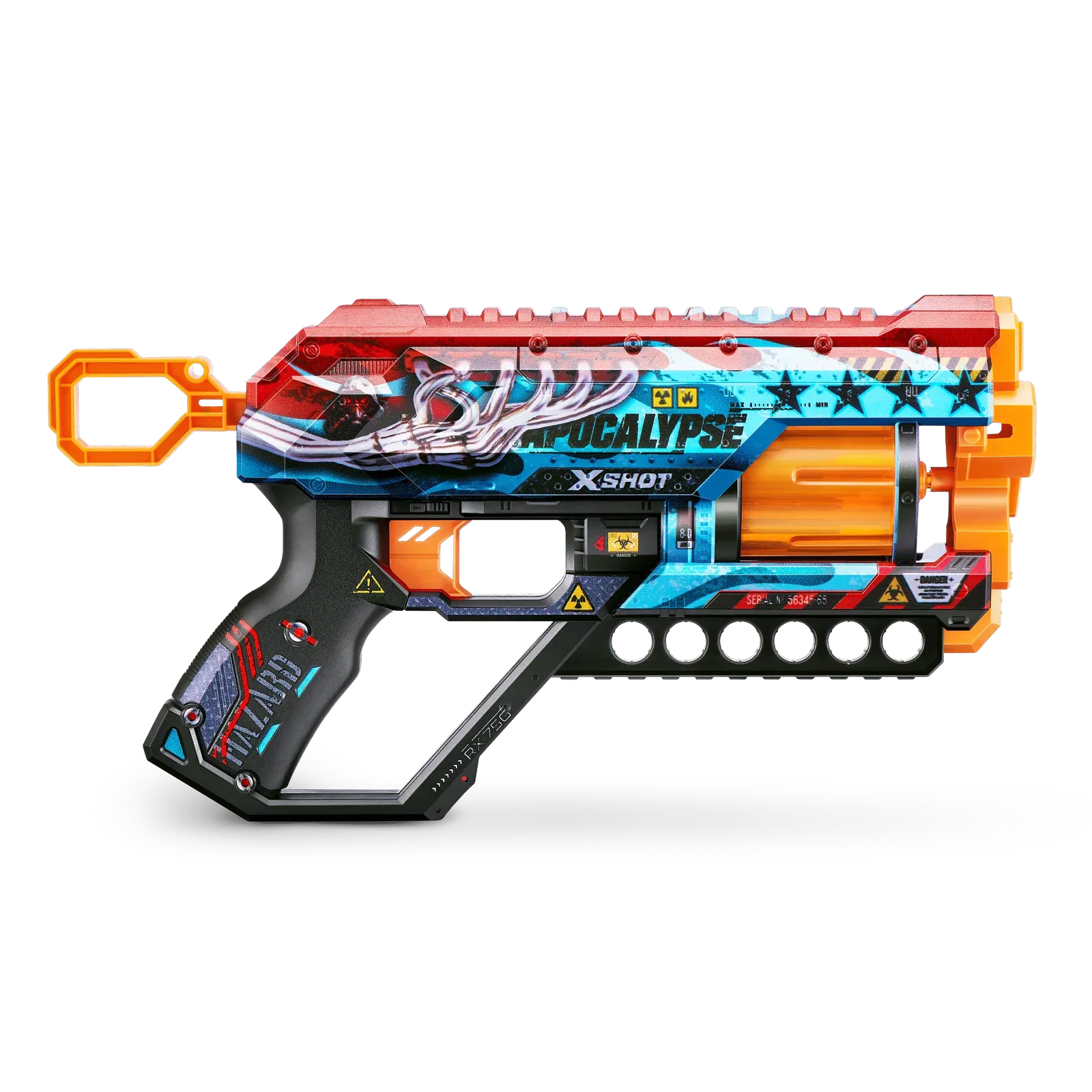 Las skins XSHOT hacen que la experiencia de juego de cambiar la skin de tu pistola sea real. Elige tu skin y únete a la batalla. La pistola XSHOT Skins Griefer tiene suficiente potencia para derribar blancos a una distancia de 27 metros/ 90 pies. Esta pistola derrota a todos en menos de 30 segundos con su cañón giratorio y su disparo rápido de 6 dardos. La pistola XSHOT Skins Griefer viene con 6 skins exclusivas para seleccionar y coleccionar y con 12 dardos de goma con tecnología air pocket. Elige diferente, elige la pistola XSHOT Skins.