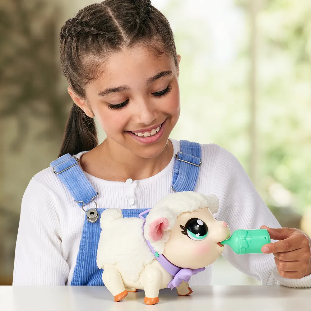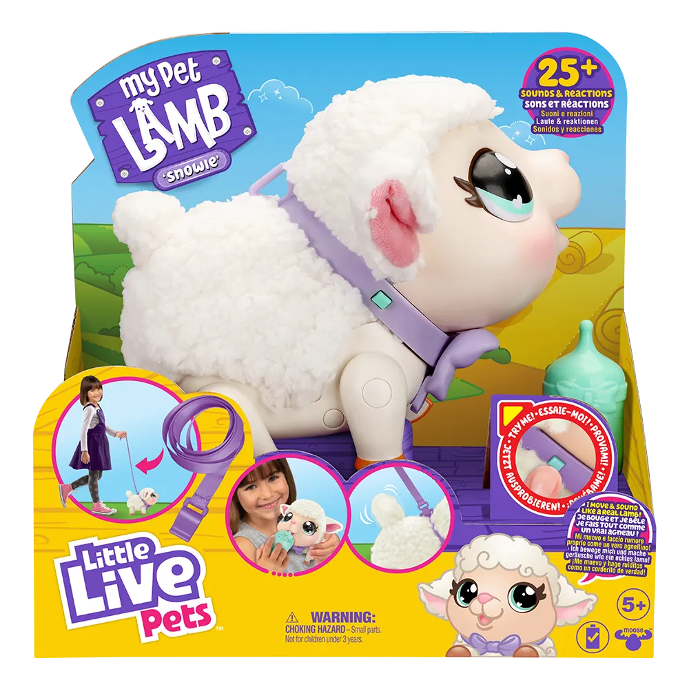 Little Live Pets | My Pet Snowie. Corderito interactivo con +25 sonidos y reacciones; se mueve y suena como un verdadero corderito. Alimentála con su mamadera y dale un abrazo mientras reacciona a tu toque. ¡Mira cómo su cola se mueve mientras camina! Snowie hace tantos sonidos divertidos y dulces: bala, se alimenta, se ríe, eructa, huele, estornuda, e incluso puede dejar escapar gases, también! Snowie tiene orejas lanudas y una cola que se mueve cuando se mueve. Camina con su correa o mira cómo se mueve y baila con sus propias melodías. Snowie viene con una correa desmontable para caminar, una botella, un folleto de instrucciones ¡Juga y lleva de paseo a tu nueva mascota! ¡Explora el mundo de Little Live Pets! Descubrí mascotas que cobran vida: ¡estas mascotas se mueven, actúan y suenan como si fueran reales! Estas mascotas nunca han estado más vivas y reales, listas para crear momentos mágicos. Encontrá toda la linea de Little Live Pets en Vulcanita.