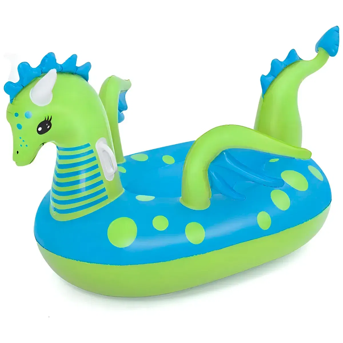 ¡Diversión asegurada en la pileta con este increíble flotador inflable de dragón! Su diseño colorido y original hará que los momentos en el agua sean aún más divertidos y seguros para los más chicos.