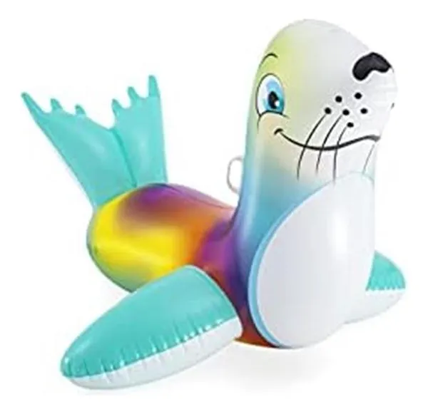 El Bestway Flash N' Splash Seal es un flotador inflable con forma de foca, diseñado para niños de 3 años en adelante, que incluye asas resistentes para un mejor agarre y un parche de reparación. Sus dimensiones son de aproximadamente 157 x 114 cm, su fabricación es de vinilo resistente y es fácil de inflar, desinflar y almacenar para la diversión en la piscina, playa o lago.
