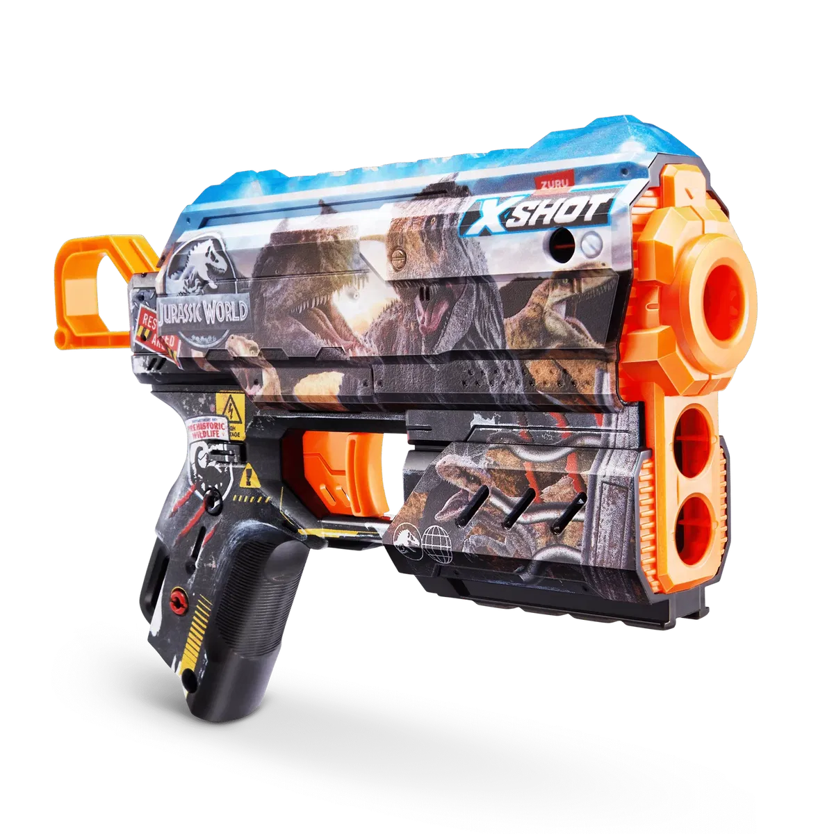 XSHOT Skins lleva al mundo real la experiencia de tunear tu blaster. Elige tu Skin y únete a la batalla. Salta directamente a la acción con la pistola lanza dardos de XSHOT Skins Flux con una capacidad de disparo de un dardo y 2 dardos de almacenamiento frontal. El Flux puede alcanzar objetivos a una distancia de hasta 27 metros y viene en 6 diseños únicos para seleccionar, coleccionar y para construir tu arsenal definitivo. Elige diferente, elige XSHOT Skins.