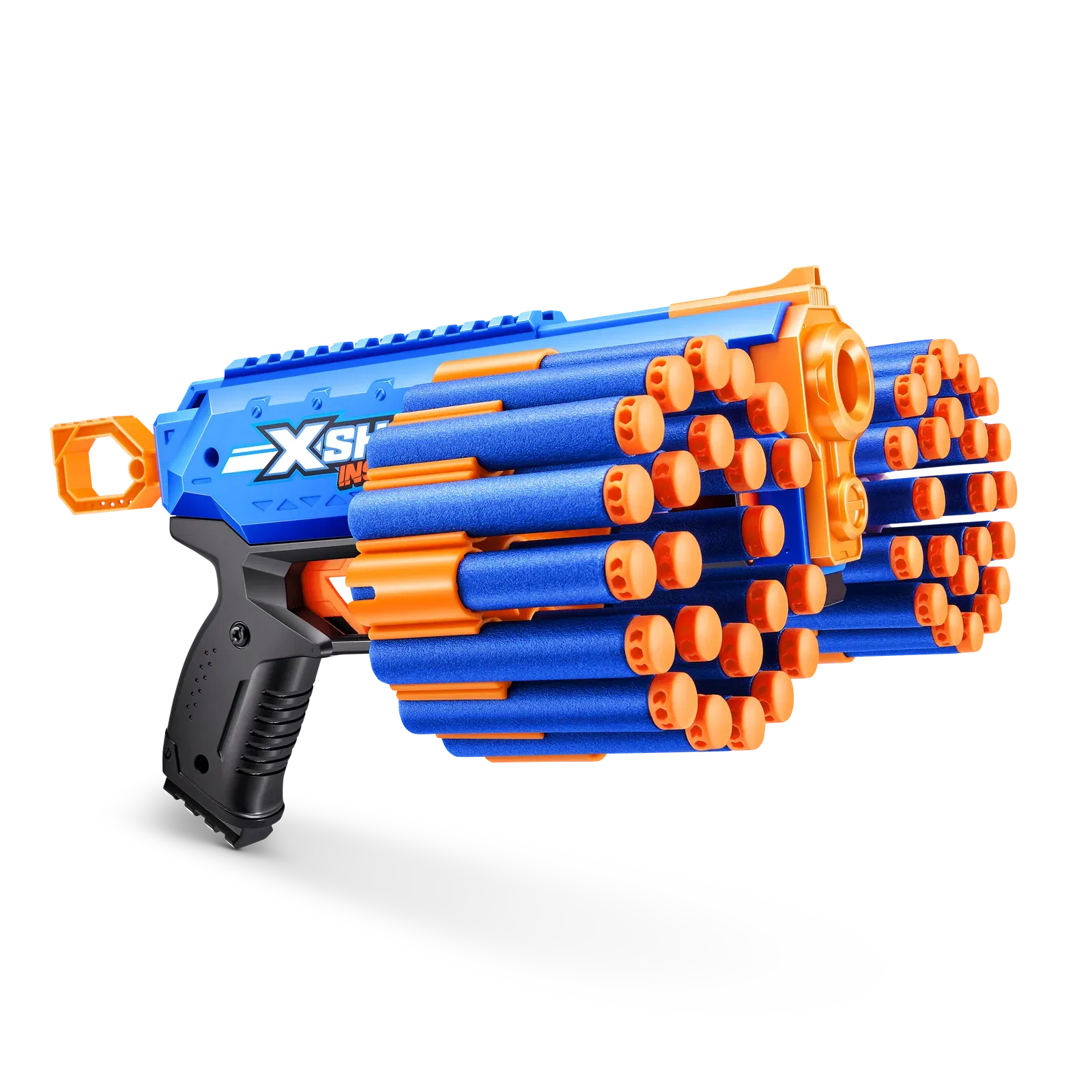 ¡Combos locos, municiones y acción con XSHOT Insanity! La pistola Manic tiene una capacidad para un solo dardo y almacenamiento para 46 dardos adicionales. Nunca te quedarás sin dardos a mitad de la batalla. La pistola Manic alcanza blancos hasta una distancia de 30 metros/99 pies e incluye dardos con tecnología air pocket.