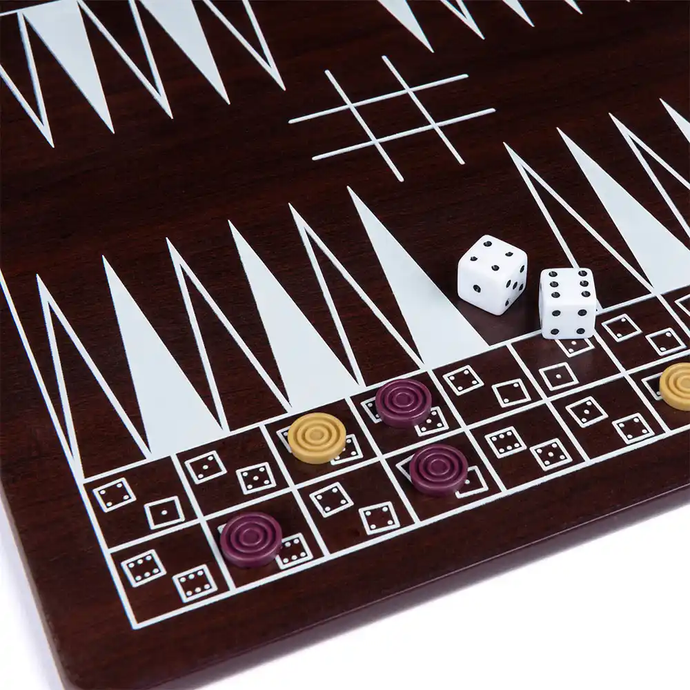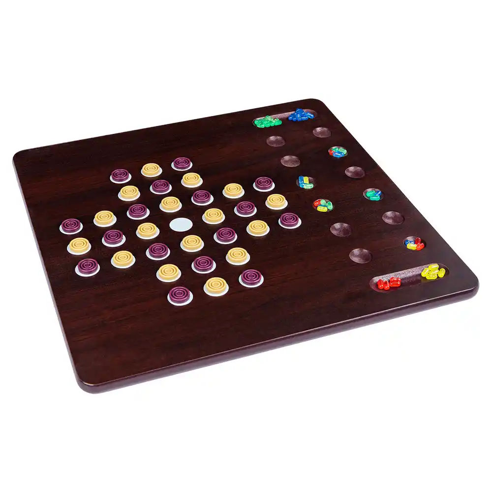 Incluye opciones tradicionales como futbolín, hockey de mesa, ajedrez, damas, mancala, palitos chinos, cartas, juegos de dados y más. El set contiene 32 piezas de ajedrez, 32 de damas, 30 palitos chinos, 60 bolitas de plástico, 48 piezas de mancala, 16 peones plásticos, un mazo de cartas, dos dados y un instructivo.