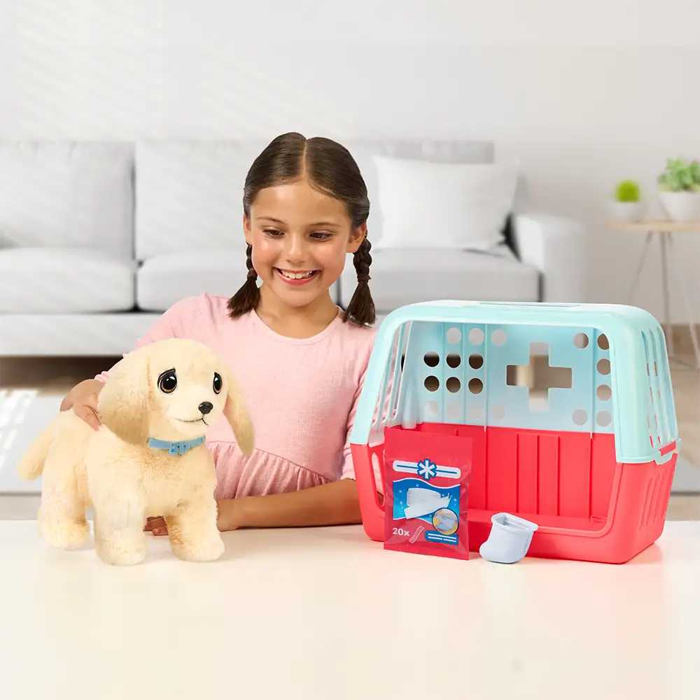 El juego consiste en cuidarlo y sanarlo: utilizando el yeso mágico y las vendas, los niños podrán ayudarlo a recuperarse y verlo caminar nuevamente. Sus mejillas se iluminan para indicar cuando está mejor, reforzando la empatía y el cuidado consciente de las mascotas.