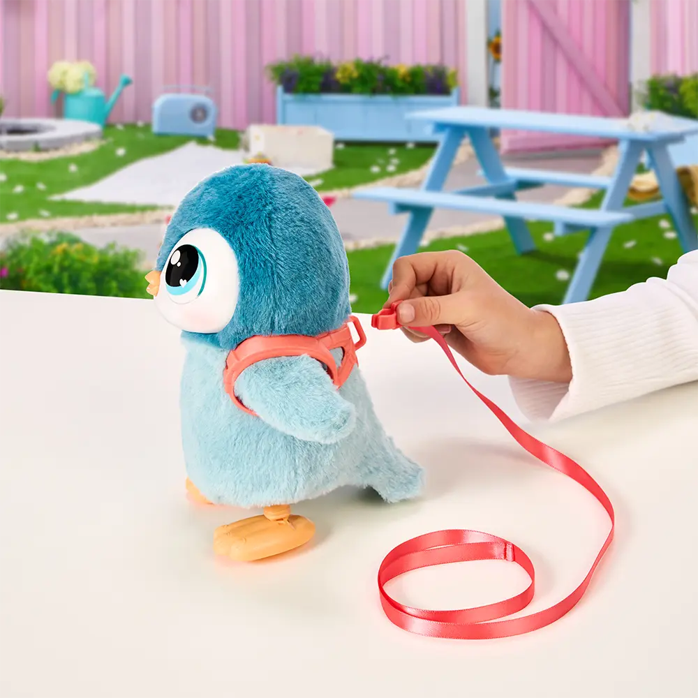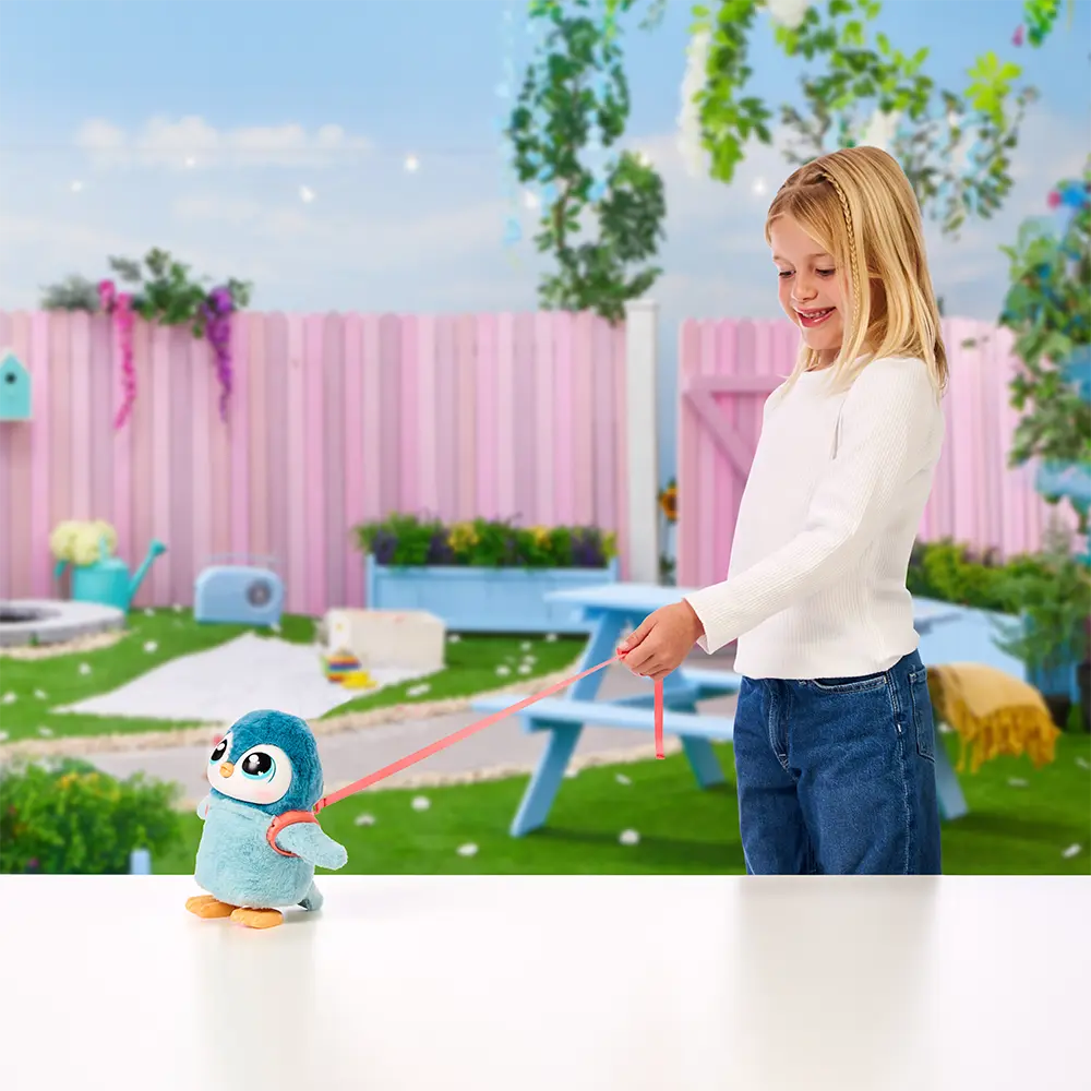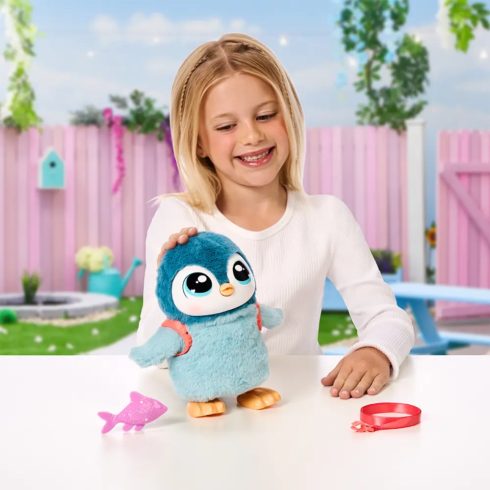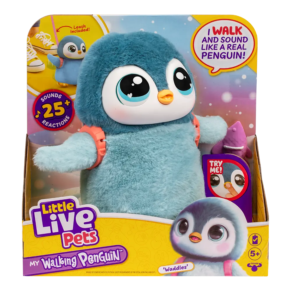 Little Live Pets ¡Mi pingüino caminante! Waddles se mueve y suena como un pingüino real. Aliméntalo con su pescado de alimentación y dale un abrazo mientras reacciona a tu toque. ¡Mira cómo sus alas se aletean y su cabeza se mueve mientras camina! Waddles hace tantos sonidos divertidos y dulces: se alimenta, se ríe, estornuda e incluso puede dejar escapar un lindo pedo también. Con más de 25 sonidos y reacciones, Waddles es súper interactivo y lindo! Waddles tiene un pelaje suave y mullido y alas que se aletean mientras camina. Coloque su correa para llevarlo a caminar o ver cómo se mueve y baila con sus propias melodías. Waddles viene con una correa desmontable para caminar, un pez de alimentación, un folleto de instrucciones y baterías incluidas para que esté listo para jugar de Vulcanita.