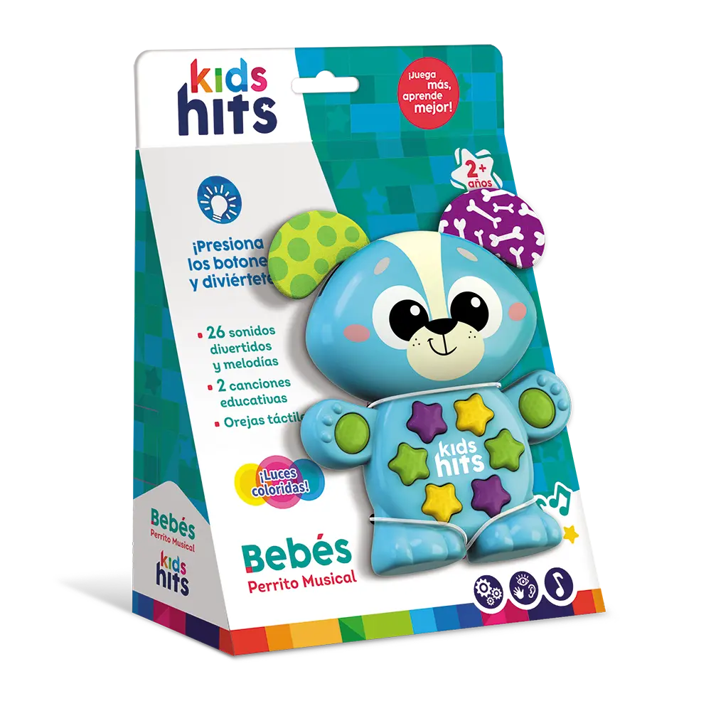 PERRITO MUSICAL – 26 sonidos y melodias, 2 canciones educativas, orejas tactiles, luces de colores, letras y numeros. Ideal ejercicios de aprendizaje.¡Música hermosa y brillante El perrito musical es un juguetes ligero que invita a los bebés al mundo de la música! Al explorar varios sonidos de sus juguetes favoritos y sus primeros instrumentos musicales, los niños pueden aprender un lenguaje musical universal incluso antes de poder hablar. Diferentes patrones y ritmos despiertan el interés de los bebés por la música y los alientan a repetir melodías familiares y a balancearse o golpear con los pies al ritmo de sus melodías favoritas. ¡Los niños pueden mostrar sus talentos musicales cantando canciones de karaoke y bailando! Comprometidos en una maravillosa obra musical.Con juguetes con luces brillantes, los más pequeños también pueden aprender el abecedario y a contar, los colores y las formas. Seguro que lo disfrutarán la sensación de logro a medida que gradualmente tienen más y más éxito en sus actividades favoritas. ¡Es hora de una gran aventura musical! Es de Vulcanita.