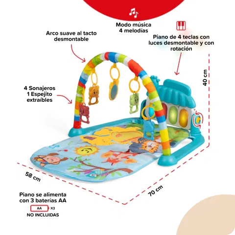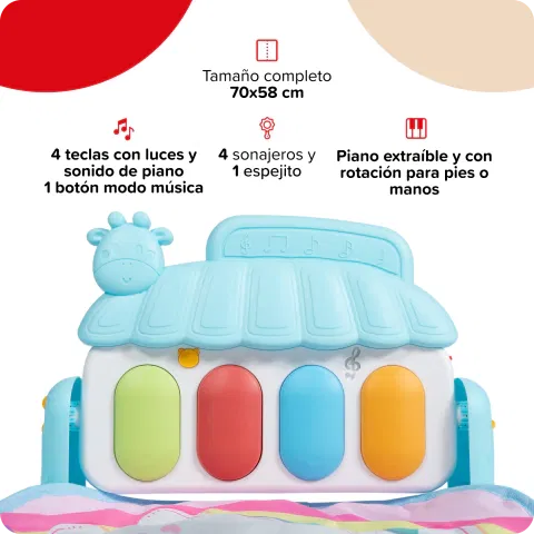 Con el Gimnasio Piano Bebesit, tu bebé se conecta con la naturaleza desde su espacio de juego. Un escenario lleno de animalitos, sonidos, colores y texturas que estimulan el desarrollo desde los primeros meses, con la diversión que aporta su piano interactivo.