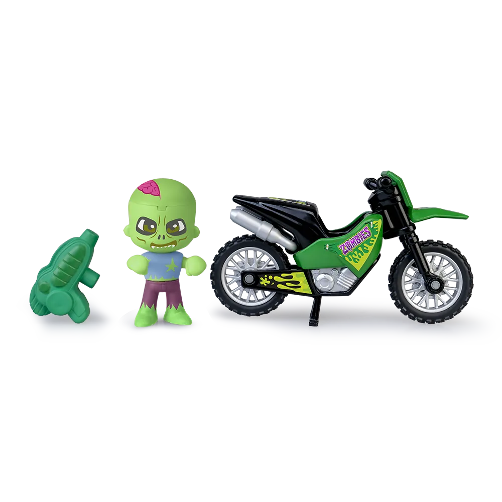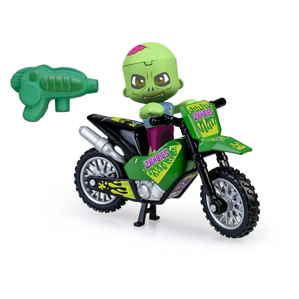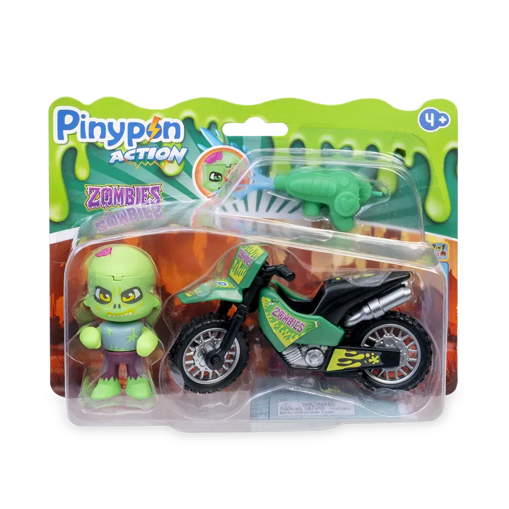 Pinypon Action Zombie Motorbike. Figura Pop & Swap cambia de cara y si le tiras agua a la cara cambia su cara a un humano y y moto. Con accesorio lanza agua.Pinypon Action abarca un gran mundo de juego y acción; desde policías y ladrones, piratas; bomberos hasta exploradores y dinosaurios con una gran diversidad de juguetes.Unas pocas figuras de Pinypon Action proporcionan horas y horas de diversión gracias al sinfín de divertidas mezclas que se pueden hacer con las piezas de la figura.Además de divertirse, los niños desarrollan su vocabulario e imaginación y mejorarán su psicomotricidad fina. De Vulcanita