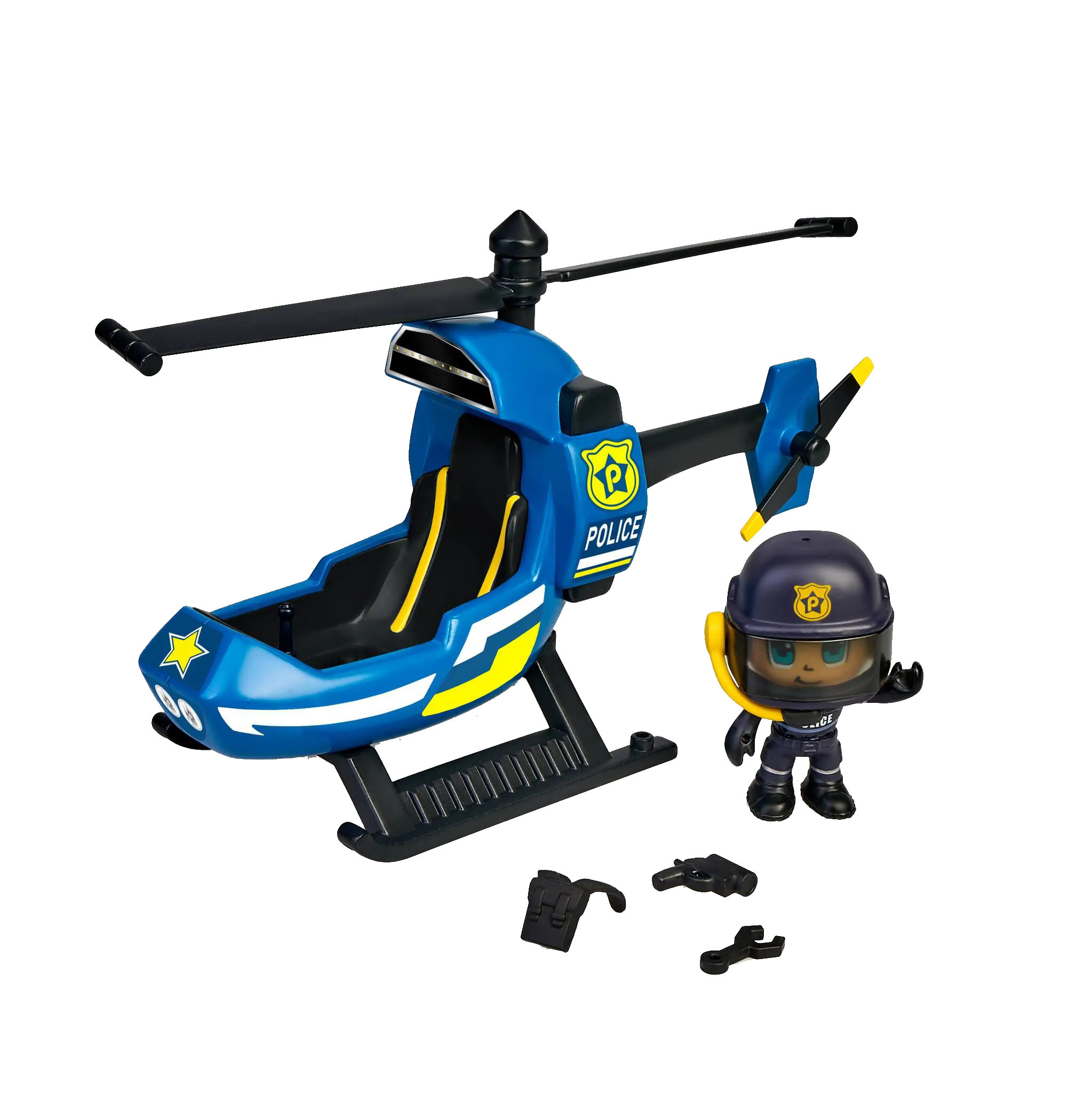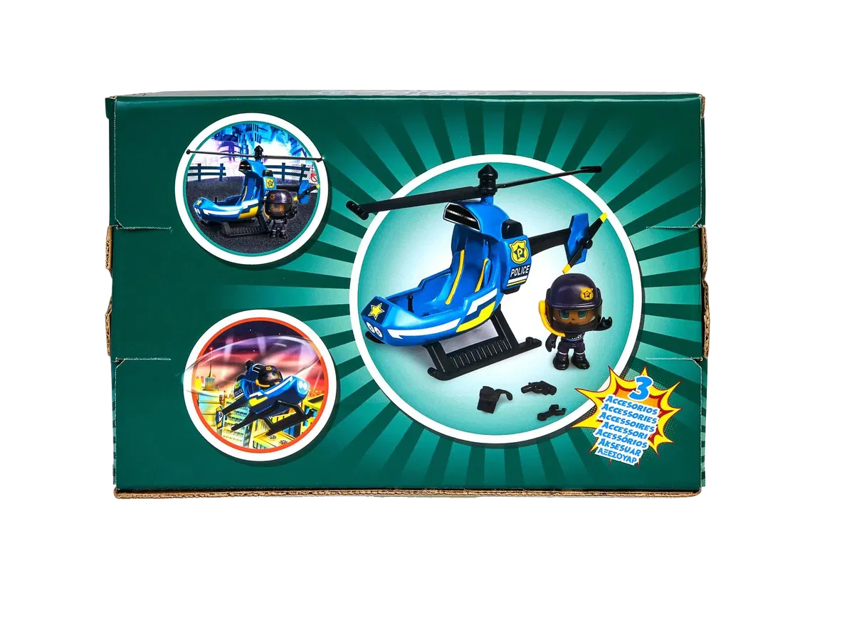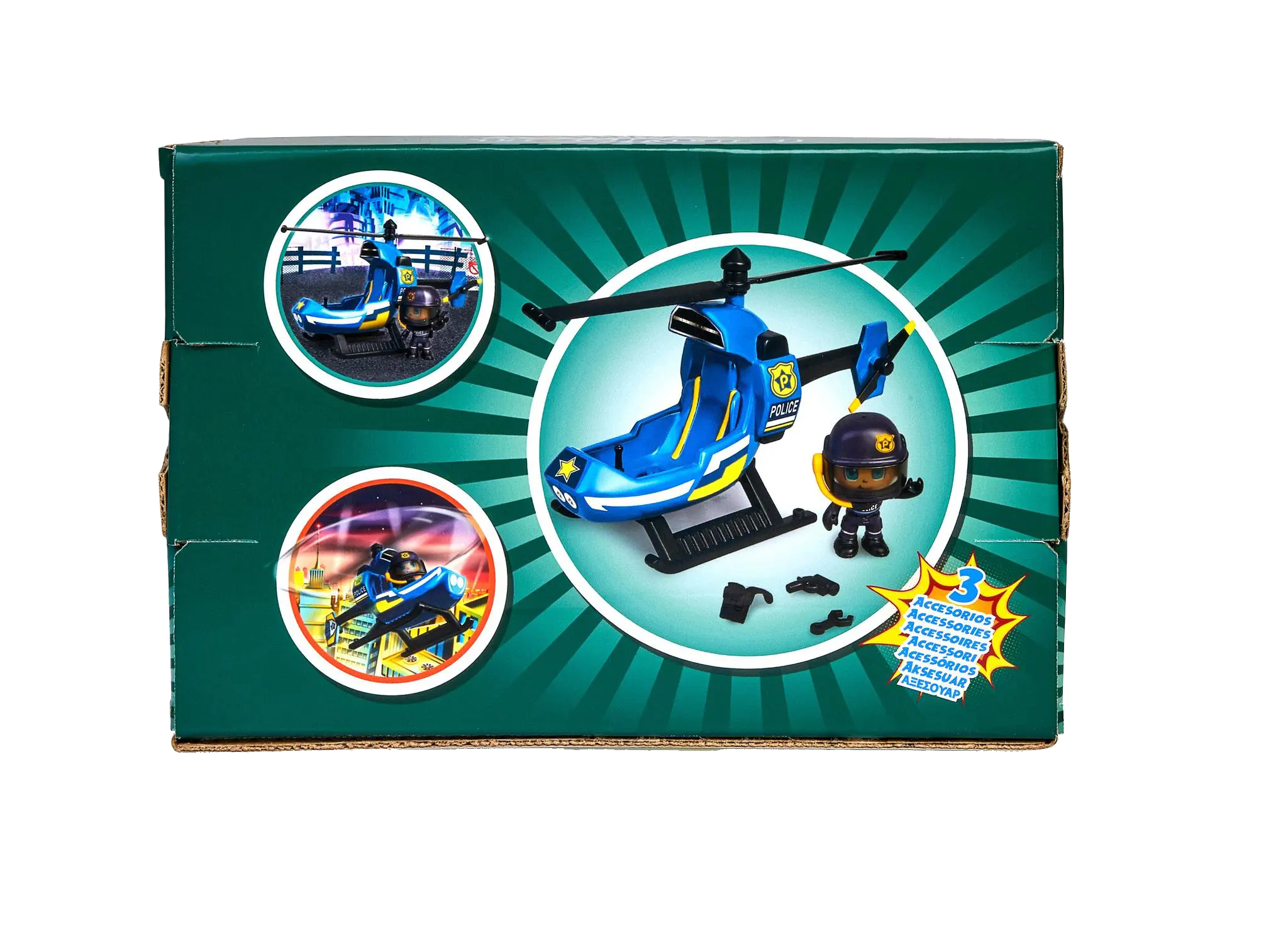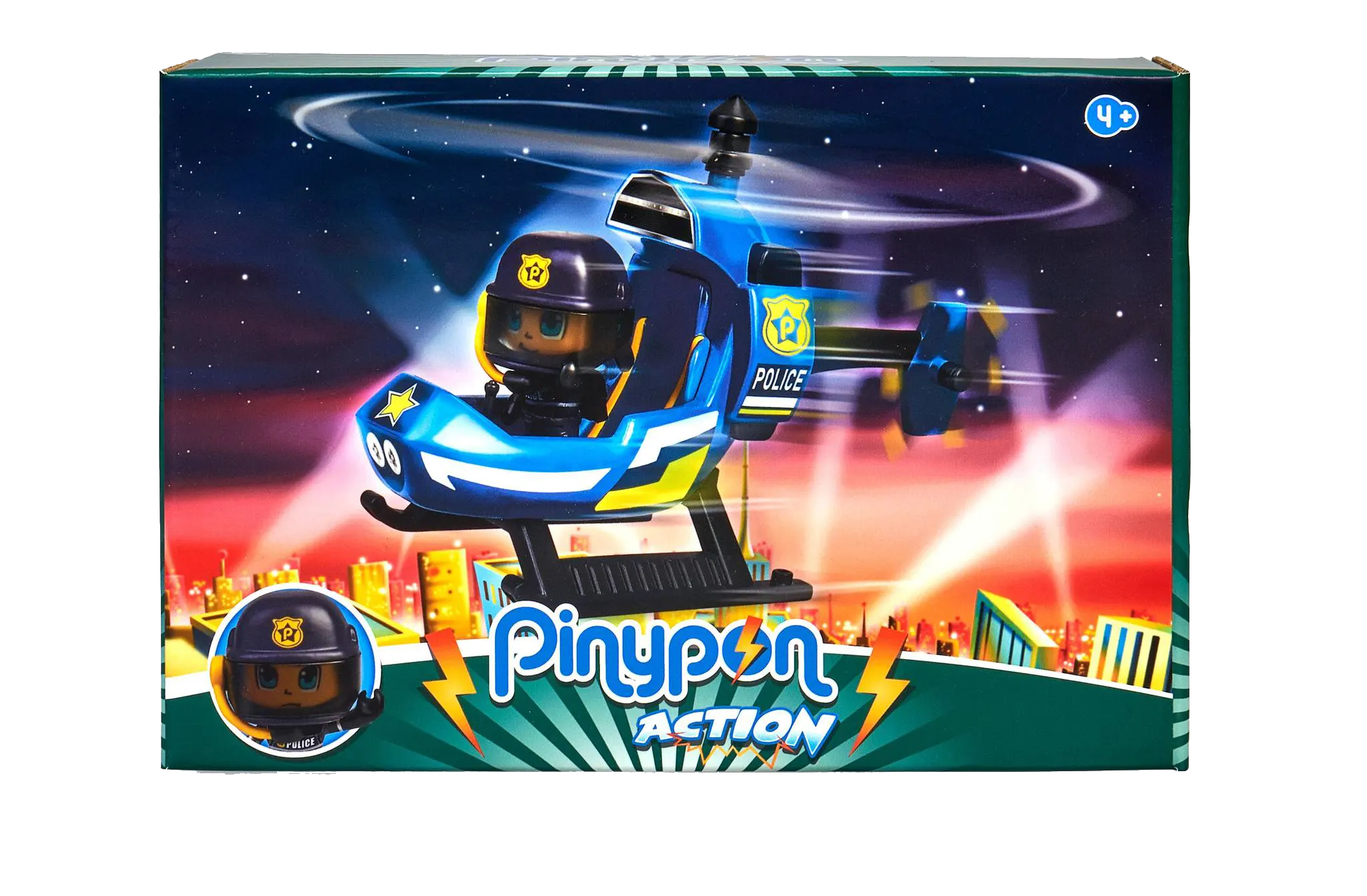 Pinypon Action | Juguete Helicóptero de Policía “Patrulla y protege la cuidad”. Puede aterrizar en cualquier sitio, incluyendo en el tejado de la Comisaría. El vehículo es mono plaza y giran las hélices. Incluye figura policía y accesorios. Divertíte protegiendo la ciudad. Encontrá toda la línea de Pinypon Action en Vulcanita.