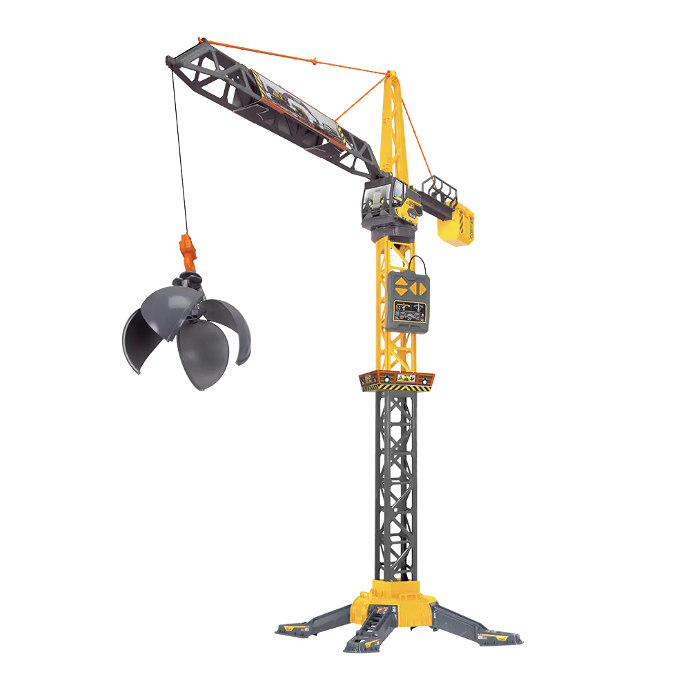 con su impresionante altura de 110 cm y diversas funciones ya sea con el brazo de grúa giratorio de 360° o con la bola de demolición con función de agarre. izquierda, derecha, arriba y abajo. la bola de demolición está equipada con brazos de agarre. las baterías necesarias (3x 1,5v-r6) no están incluidas en el juguete. es un juguete con gran nivel de detalle: Estimula el juego creativo y la imaginación. Recomendado a partir de los 3 años.
