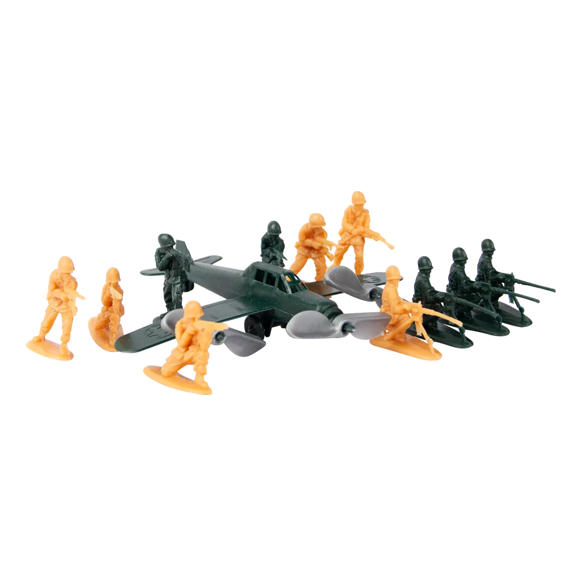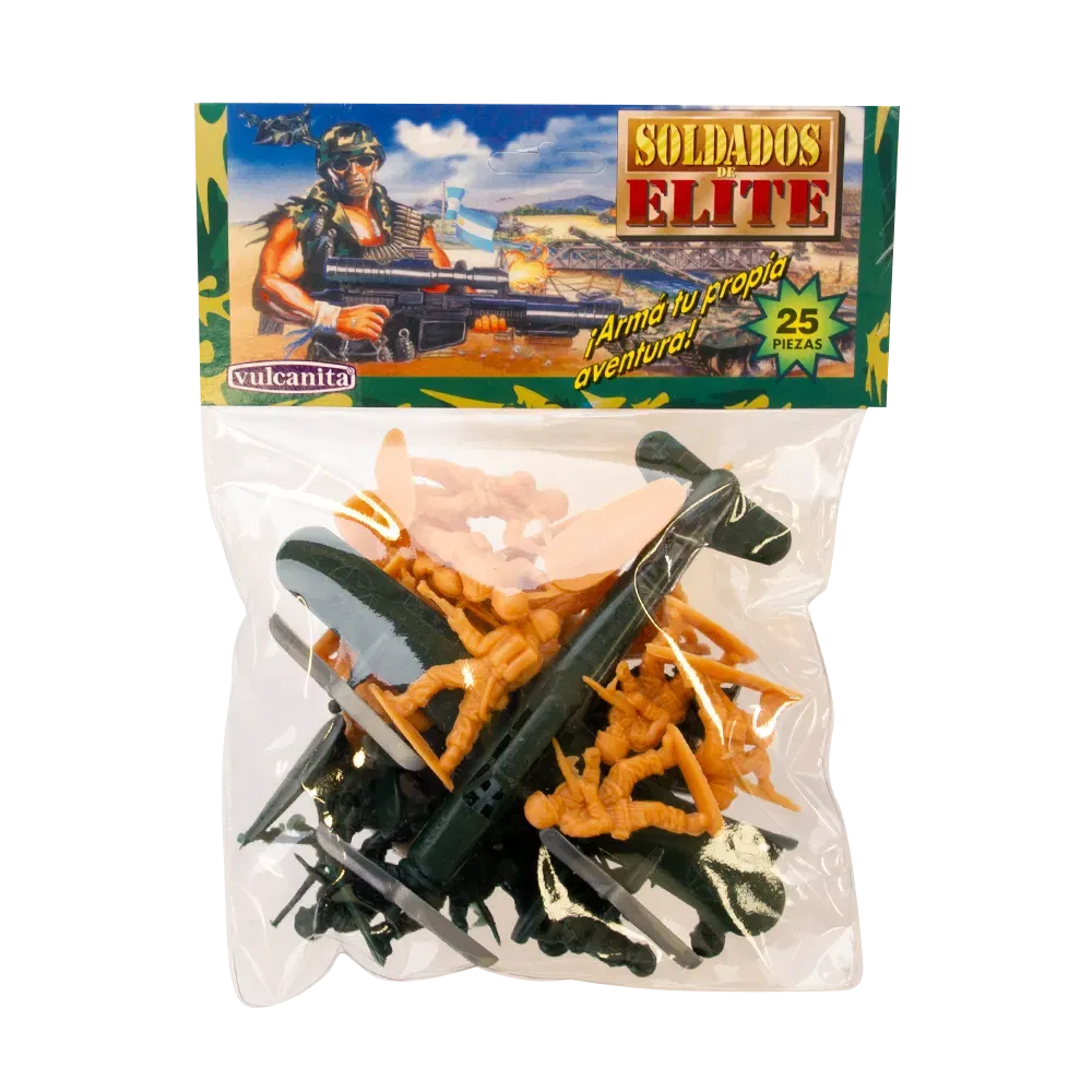 Vulcanita | Set Soldados x 25 Piezas con vehículo. Surtidos: Avión, Helicóptero, Jeep o gomón. ¡Divertite con este clásico juguete y arma tu batallón! Industria nacional. Encontrá toda la linea de Soldados en Vulcanita.