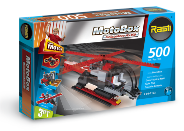 Armá y jugá con el super helicóptero Rasti. También podrás armar el Autoelevador y el Ultraliviano. ¡Con la línea Motobox, dale vida a tus creaciones! Contiene 500 piezas.