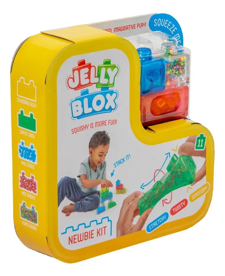Jelly Blox - Newbie Kit Descubrí los Jelly Blox, los bloques de construcción sensoriales que son flexibles, elásticos y súper blanditos. Más que un juguete, son una experiencia sensorial única para los más pequeños. Este kit de iniciación es perfecto para que exploren un mundo de texturas y formas. Estimula su creatividad y motricidad fina mientras se divierten apilando y construyendo. ¿Qué incluye el Newbie Kit? 11 bloques sensoriales con diferentes formas y tamaños para un juego sin límites. Variedad de texturas: Bloque estándar Bloque con arena Bloque con mini estrellas Bloque con mini ladrillitos Bloque con puntitos Ideal para niños y niñas a partir de 2-3 años. Un producto con la calidad europea marca Goliath.