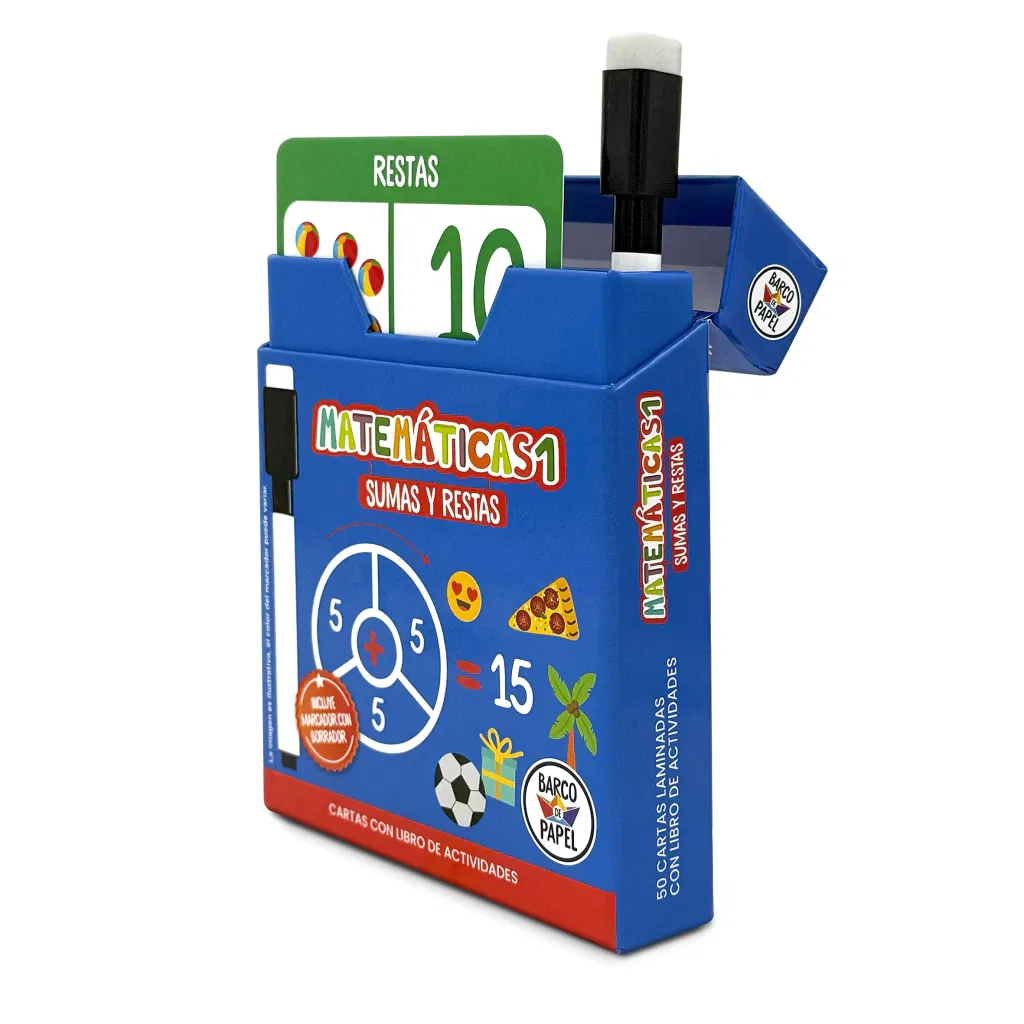 • Las cartas contienen sumas y restas e incluyen diferentes juegos y problemas para resolver.