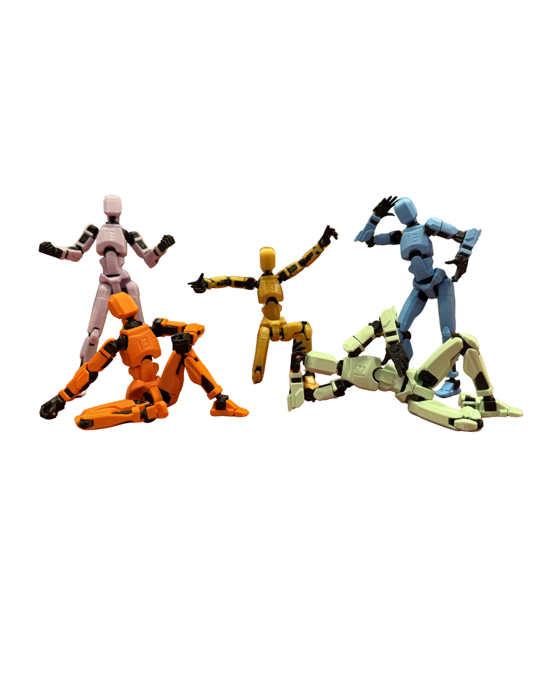 Muñecos articulados, desarmables e intercambiables entre si.