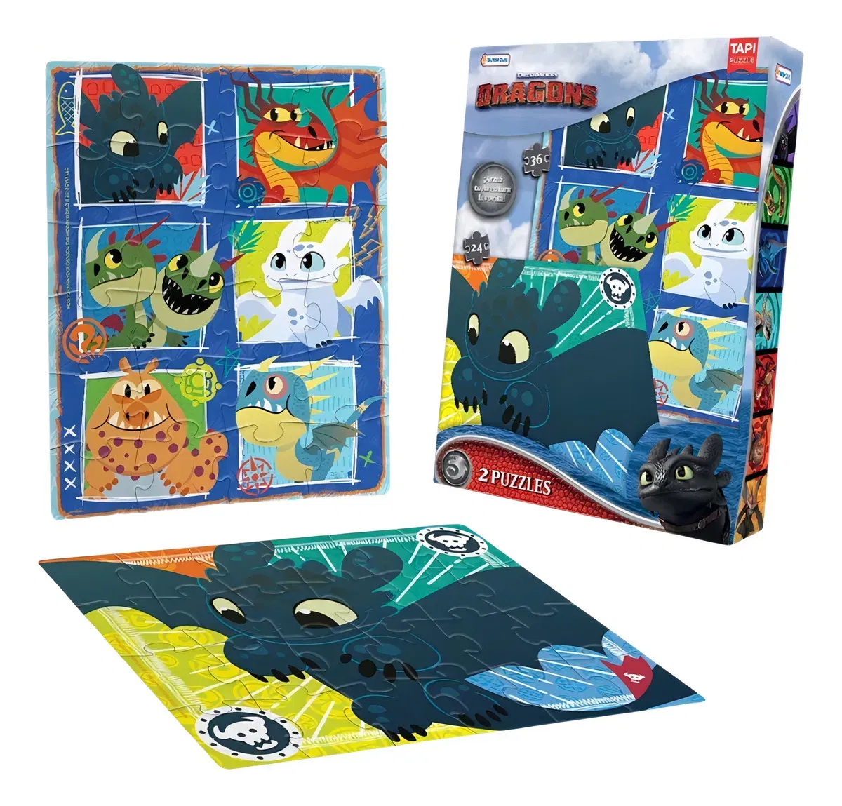 Descubre la diversión y la creatividad con nuestro set de 2 rompecabezas temáticos de "Como entrenar a tu dragón". Este emocionante pack incluye un rompecabezas de 24 piezas y otro de 36 piezas, ideales para niños desde los 3 años hasta los 99 años. Cada puzzle está elaborado en cartón resistente, garantizando durabilidad y horas de entretenimiento. Las medidas de cada rompecabezas son de 16x20 cm, lo que los hace perfectos para que los más pequeños desarrollen habilidades motoras y de concentración. Con temas infantiles y colores vibrantes, estos puzles son perfectos para la edad recomendada de 5 a 7 años. ¡Regala momentos inolvidables con los mejores productos de películas y ayuda a tu pequeño a sumergirse en la mágica aventura de los dragones! Recuerda que todas las imágenes son solo ilustrativas y este producto cuenta con la calidad asegurada.