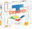 4 mazos de 56 cartas desafíos c/u; uno de cada categoría. 4 grupos de 12 piezas cada uno, de cuatro colores. 4 tableros individuales; 4 fichas "X2" y 4 "10 seg"; un reloj de arena e instrucciones de los juegos: "Completa el tablero", "Armar la figura:, "desafío 3D" y "Suma y resta"