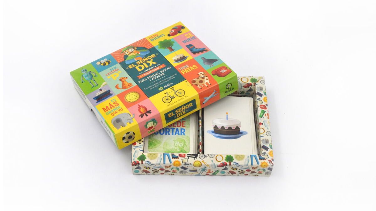 El Señor Dix es un juego de cartas que invita pensar y asociar. Tiene dos mazos: uno de dibujos y otro de cualidades. Para jugar con chicos a partir de 4 años , y con distintos niveles de dificultad, se deberán asociar los dibujos con una o más características para ir acumulando cartas y ganar el juego.