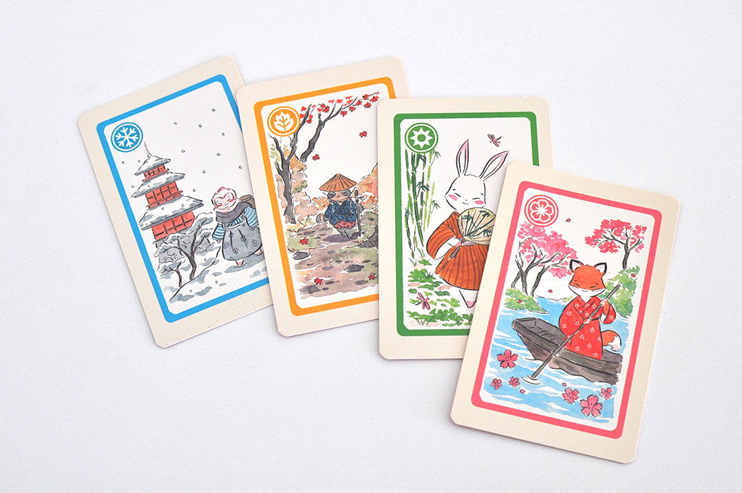 Se reparten las cartas de las estaciones del año: Invierno, primavera, verano y otoño. En cada turno, un jugador tira el dado que marcará la estación en juego. Quien lo tiró se descartará de todas las cartas que tenga de esa estación. El resto de los jugadores también juegan y se descartarán de una sola carta de esa estación. El primero que se queda sin cartas en la mano, avanza un lugar en el contador. El primero que cruza la línea de la victoria, será el ganador.